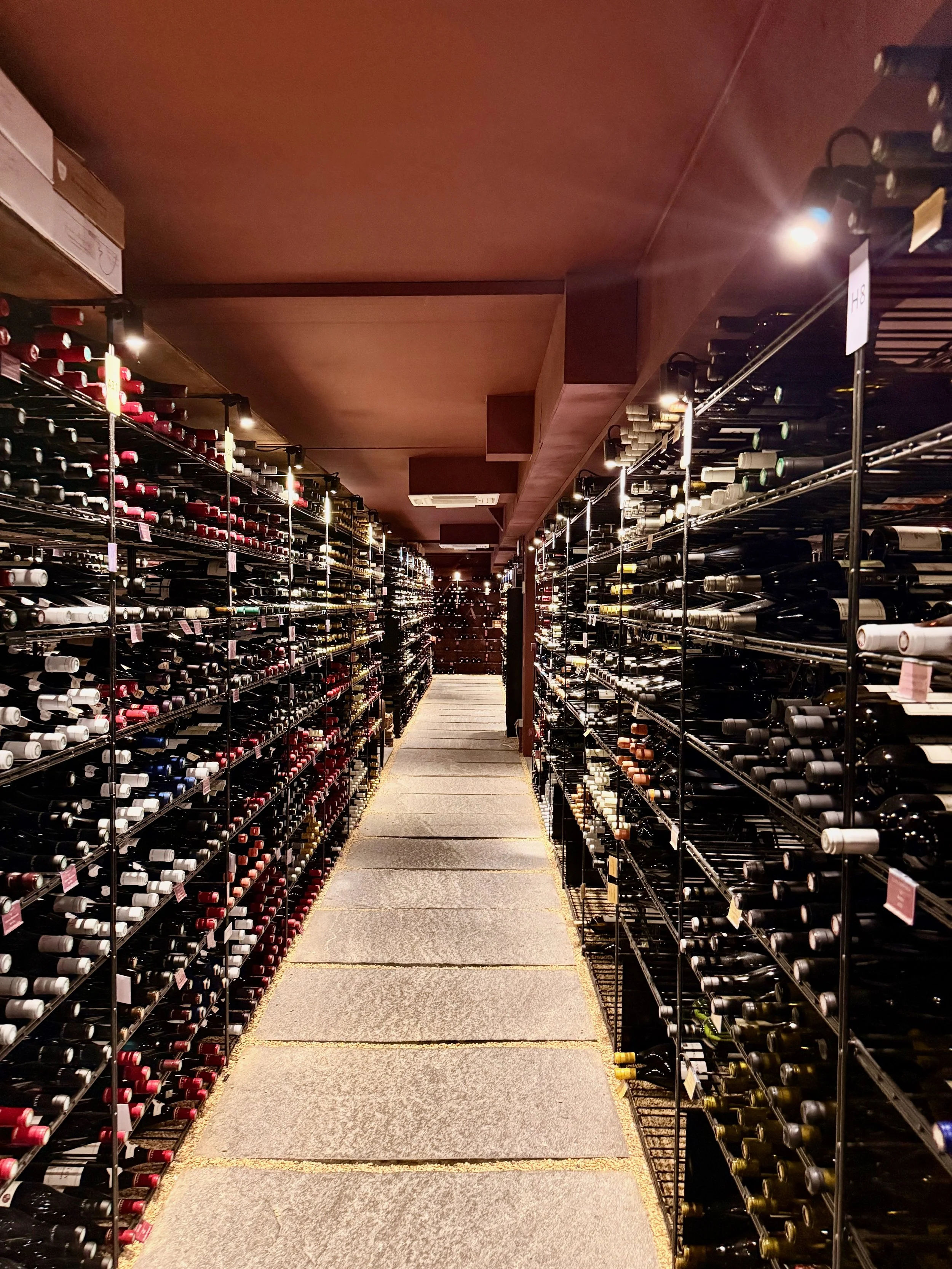 Image: The wine collection in La Cave. © 2026 Palates & Miles