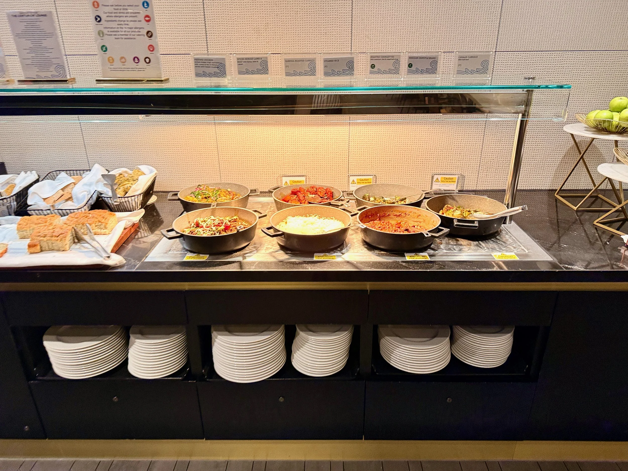 Image: Hot food buffet at Centurion Lounge. © 2026 Palates & Miles