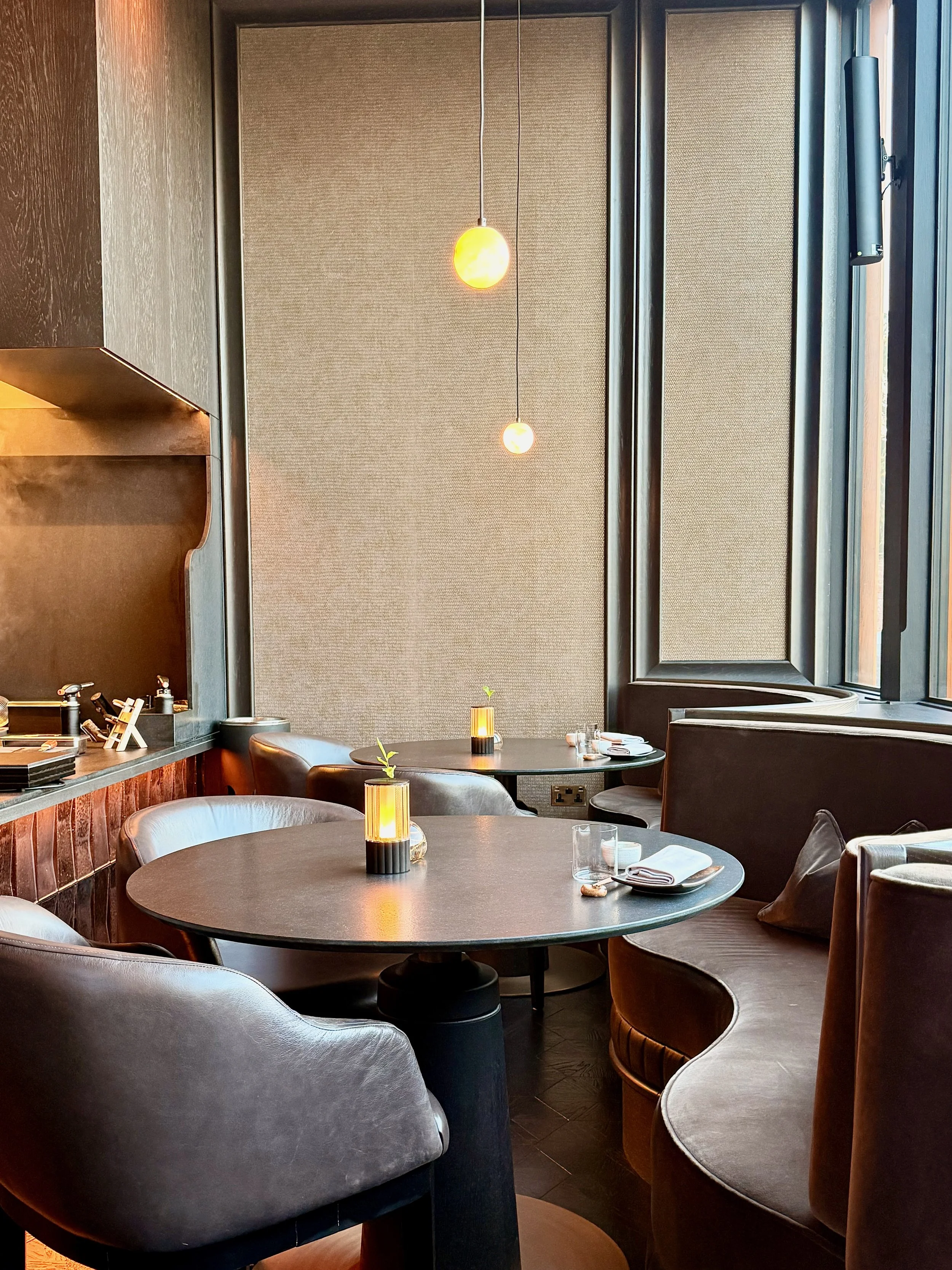 Even when full, the room does not become noisy or oppressive. The design allows the kitchen to remain visible without dominating the experience, and the atmosphere feels immersive without becoming performative.